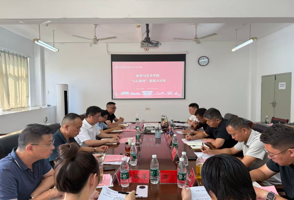 2025年9月30日,体育与艺术学院在学院301会议室开展“AI+教育”思想大讨论。会议由学院院长欧阳鹏飞主持,校党委副书记徐志峰、学院党委书记饶永星、副书记黄鹿、副院长胡继光、学院各教研室主任及部分教师代表参会。大家围绕人工智能与体育、美育教育深度融合的前景与路径畅所欲言,为学院教学改革与智慧体艺建设建言献策。