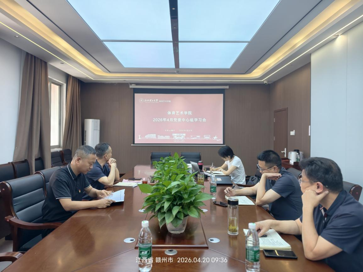 2026年4月20日,体育艺术学院在体艺楼307会议室召开党委理论学习中心组学习会。学院党委理论学习中心组成员参加会议,会议由学院党委书记、院长欧阳鹏飞主持。